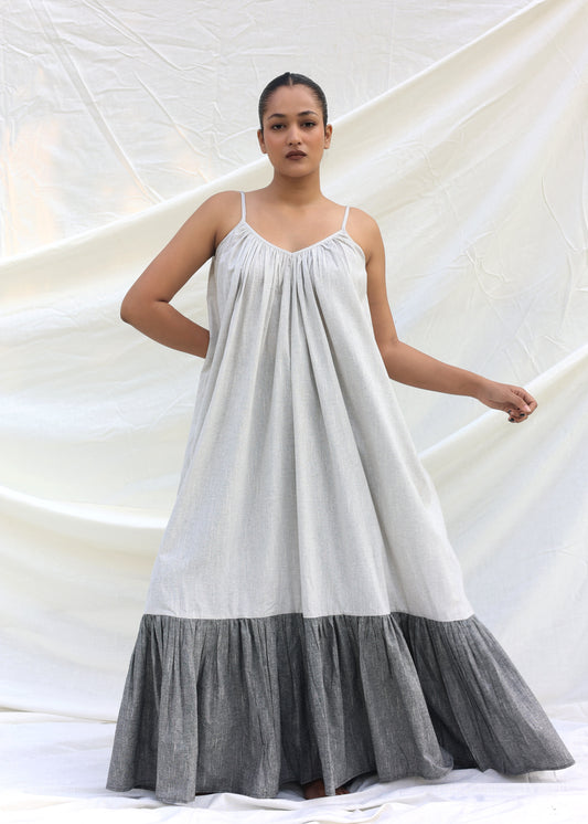 Long contrast gathered dress