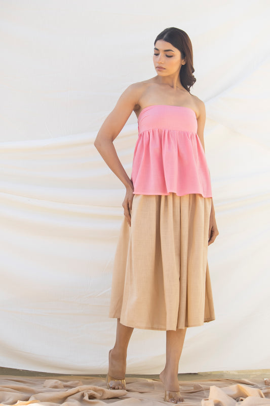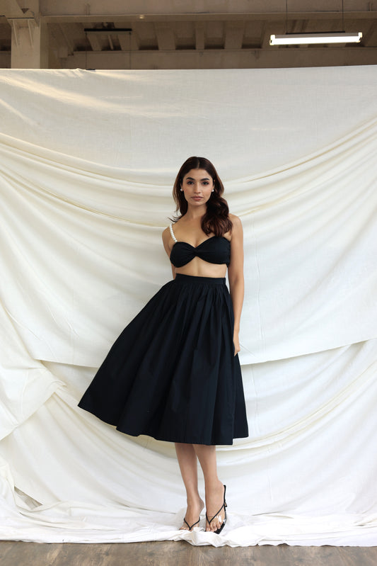 Black co-ord skirt and pearl bandeau top