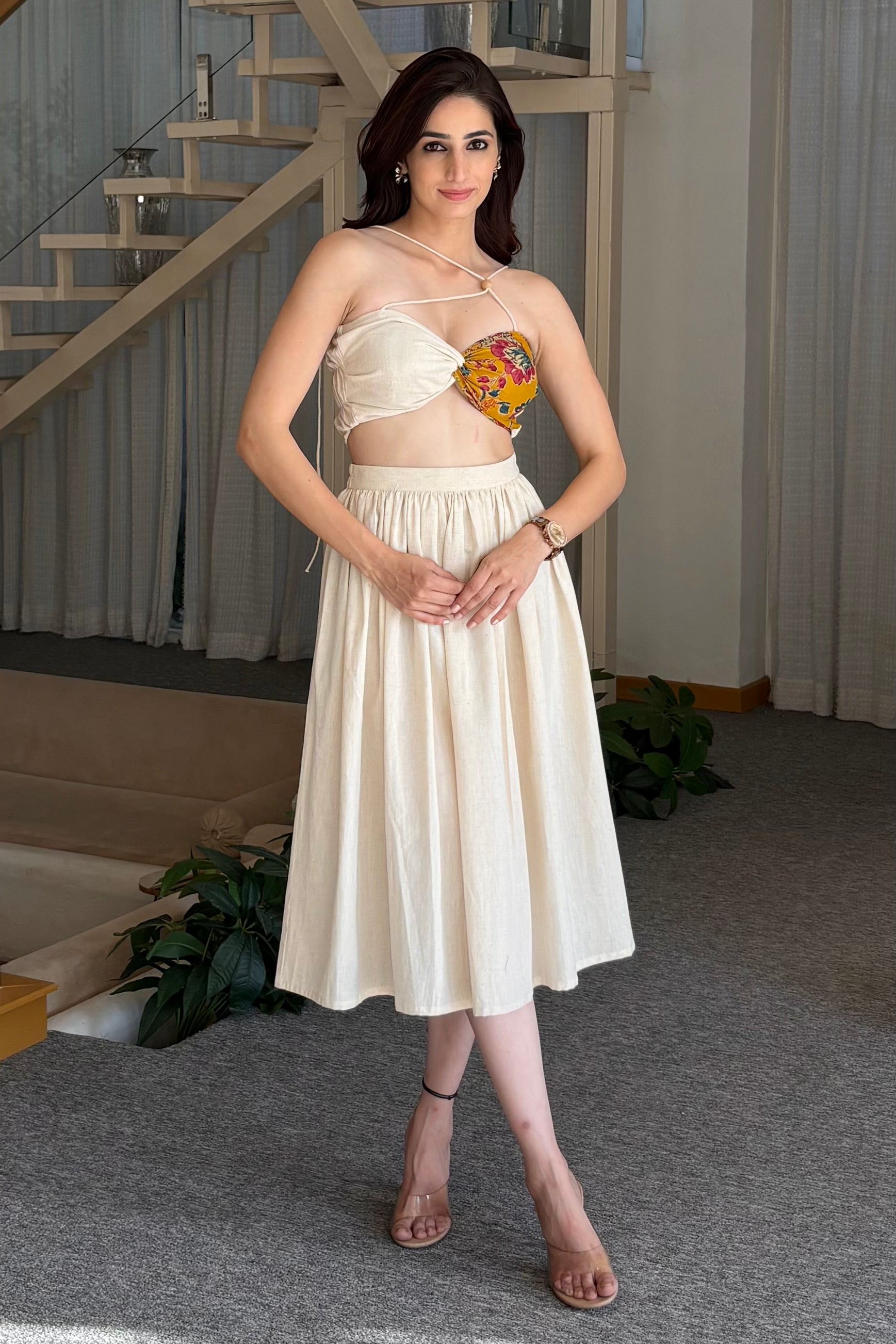 Beige co-ord set of skirt & padded bandeau top.
