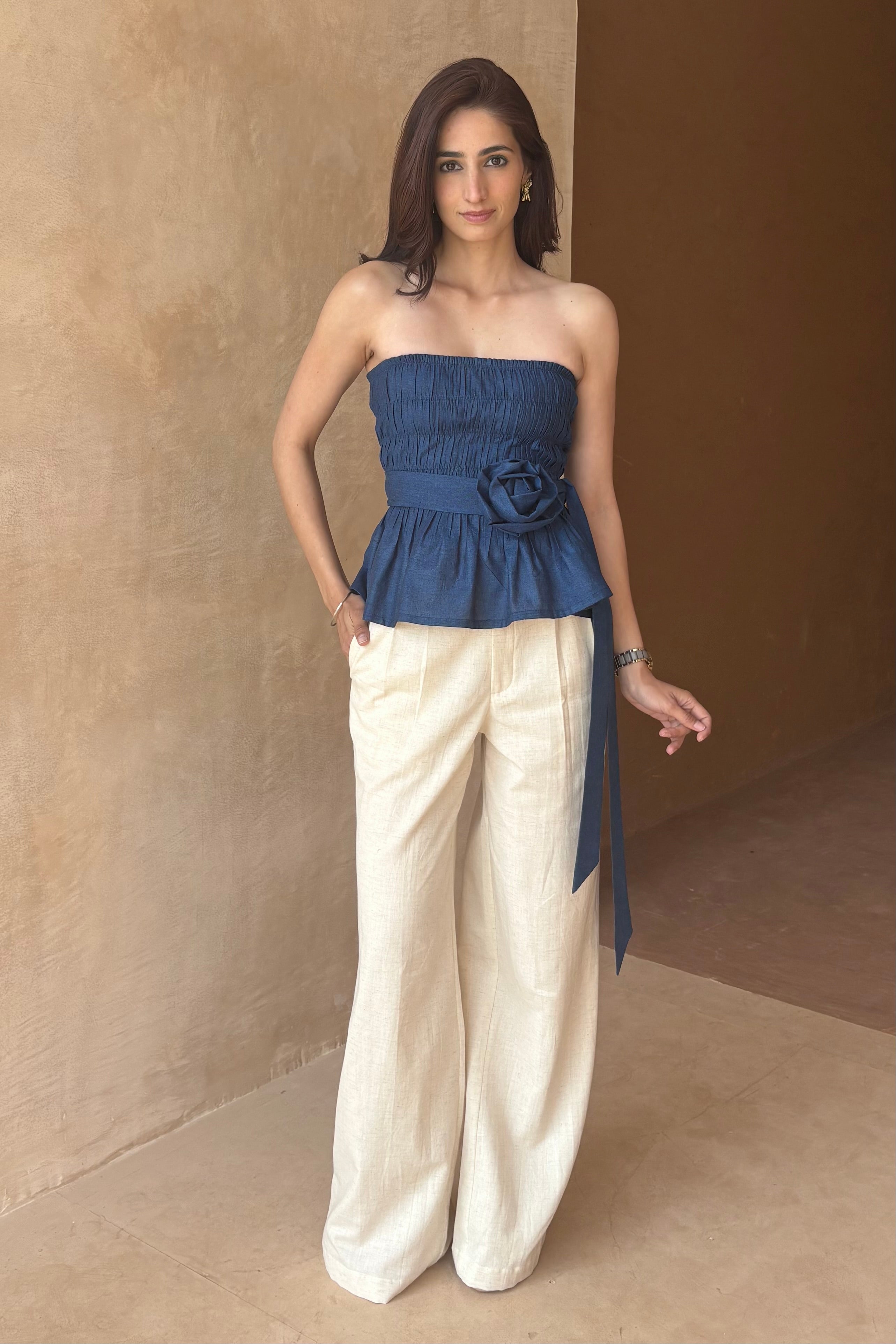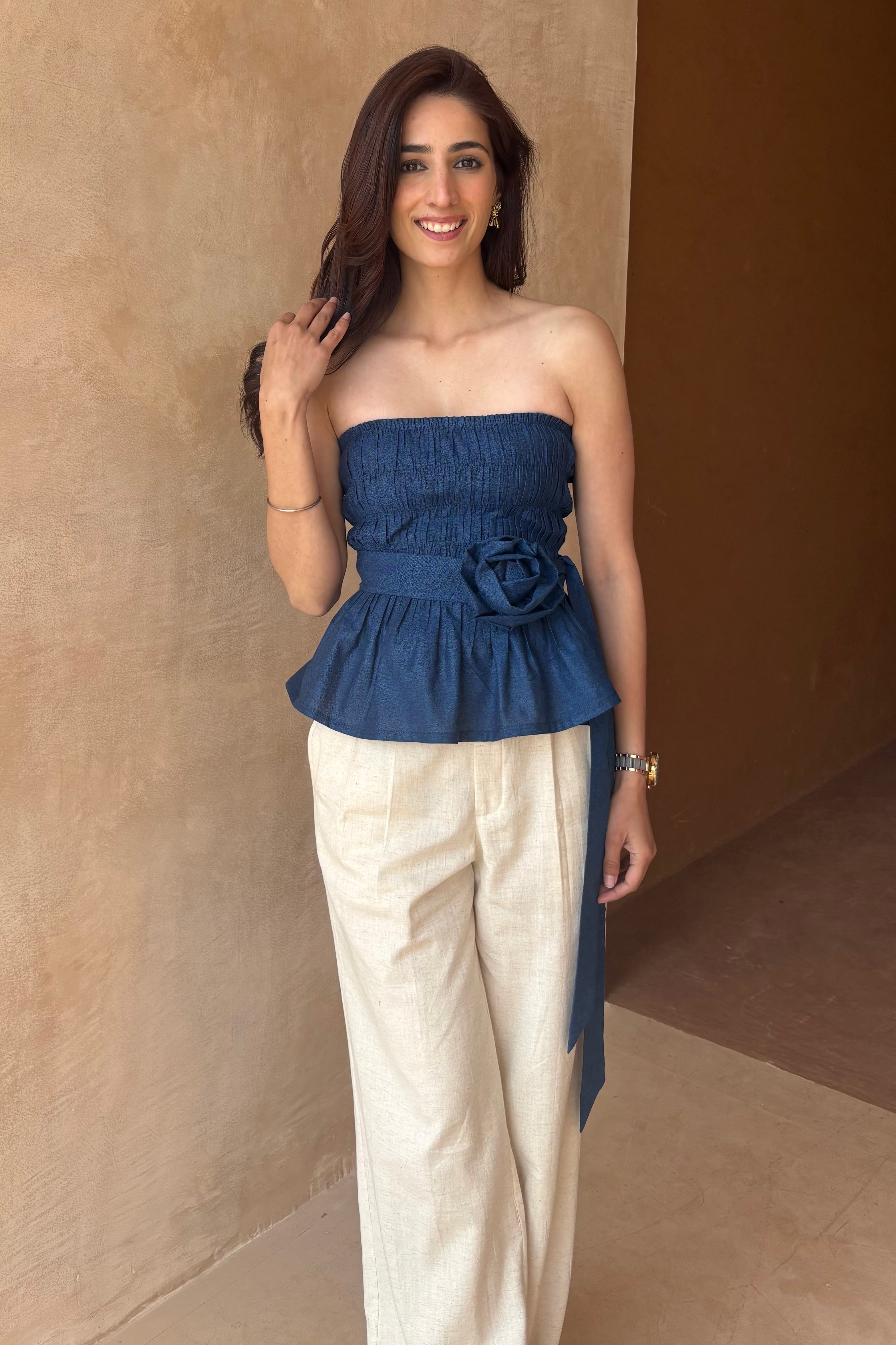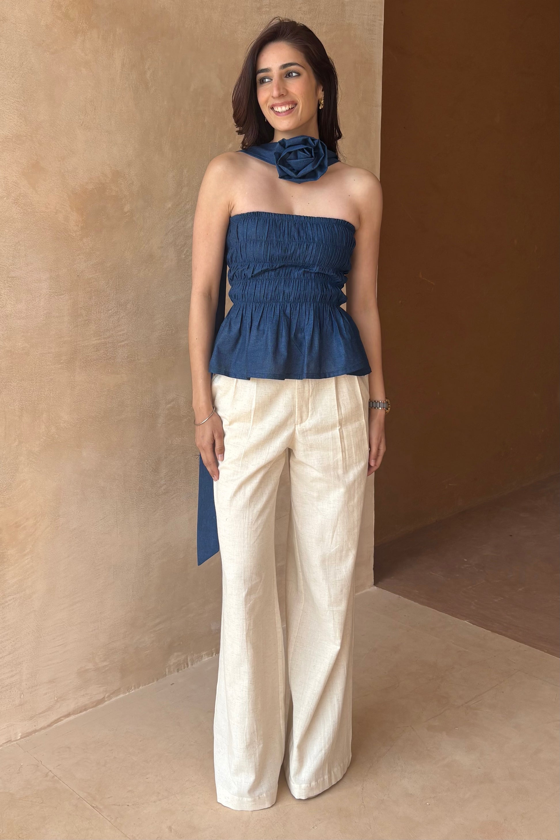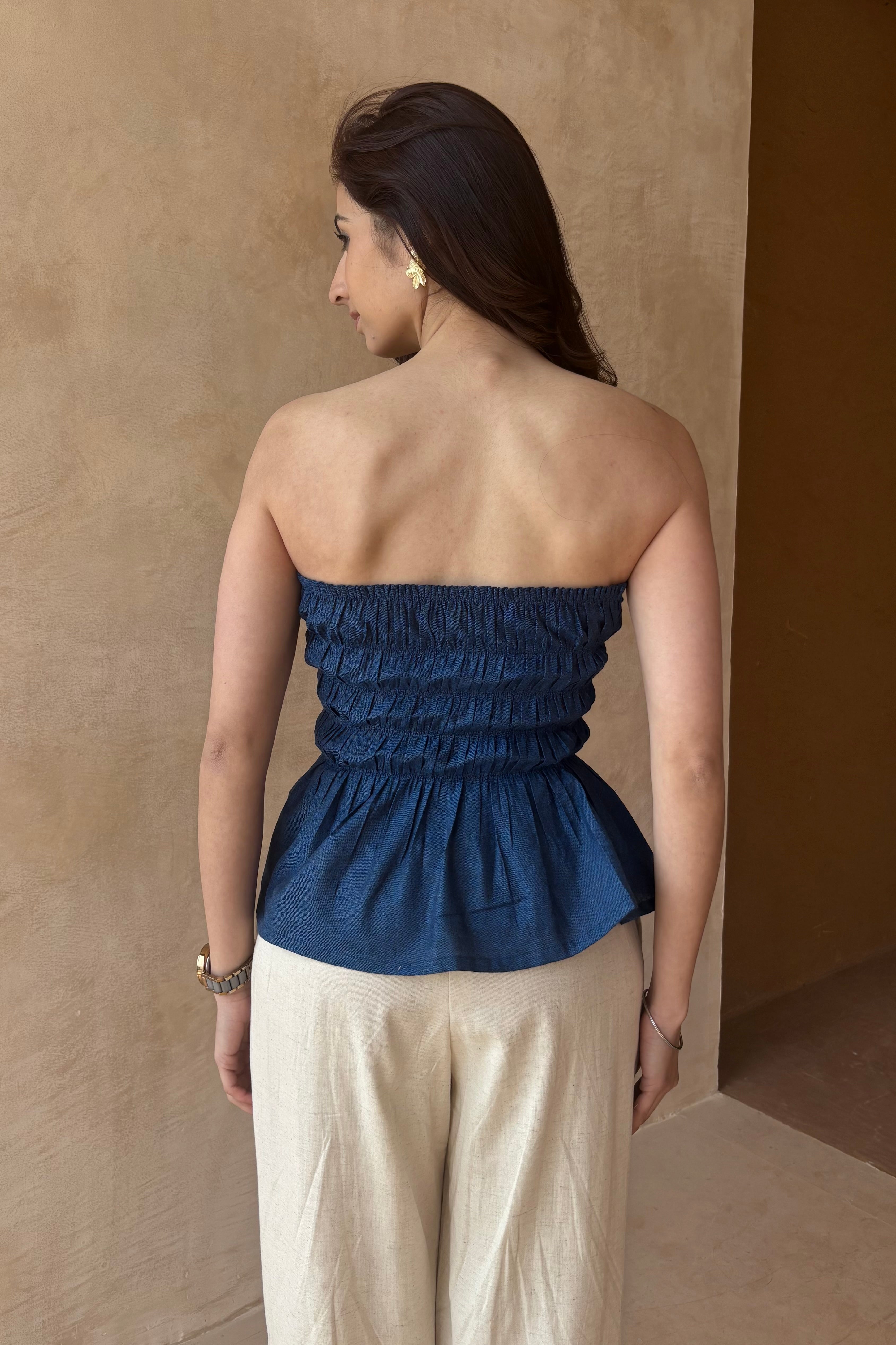 Cotton denim smocked top
