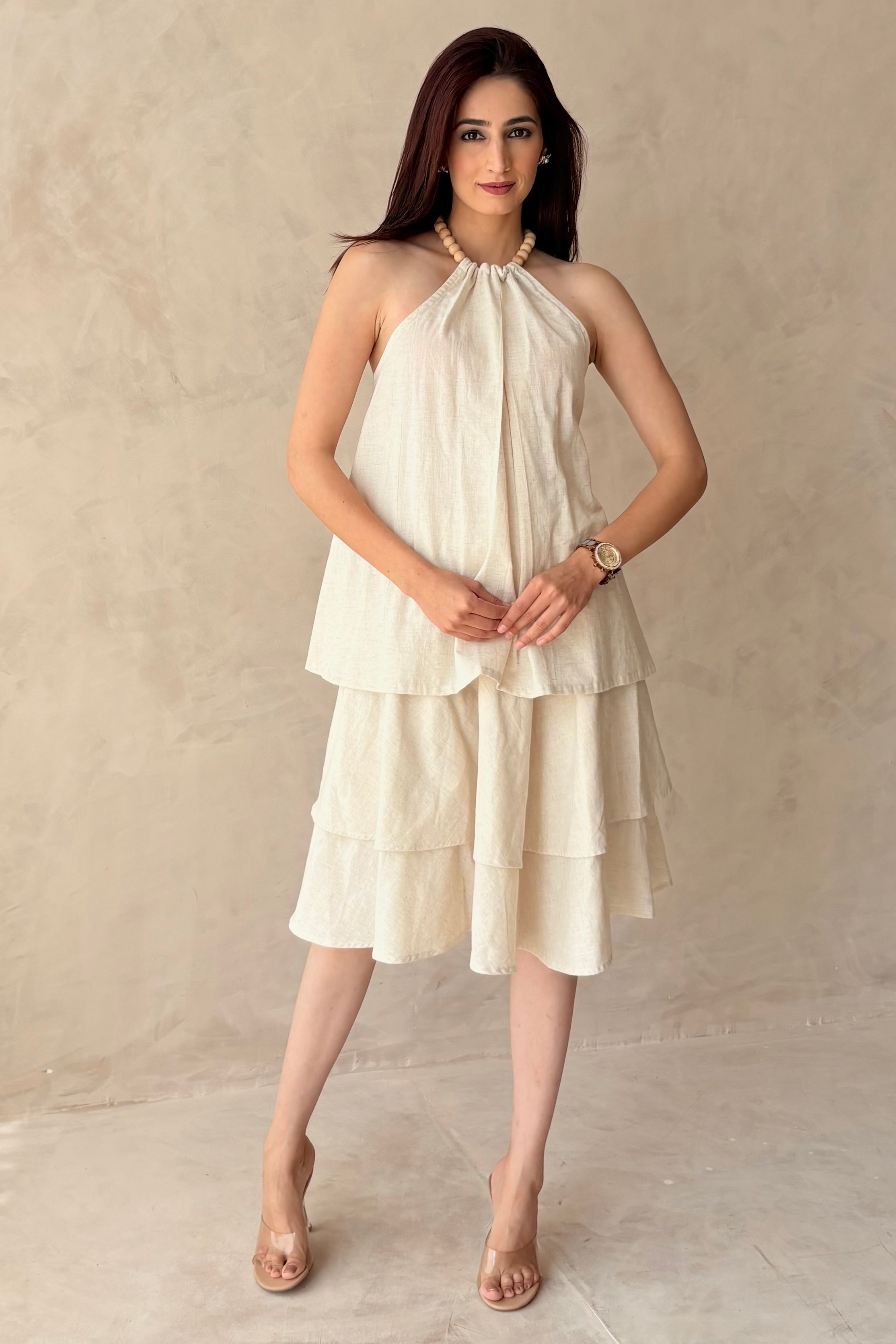 Cotton co-ord set of double layer skirt and top. Wooden beads for boho look.